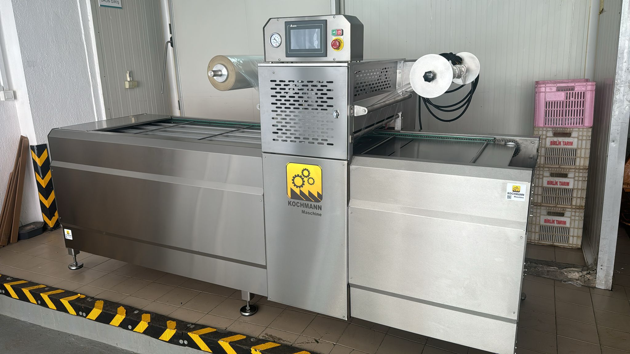 Konveyör Sistemi: Paketlenen ürünleri makine içinde taşıyan zincirli konveyör sistemi mevcuttur.